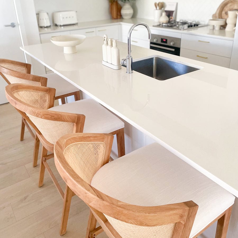 After a long search we couldn’t be happier. Everywhere was way too modern for our look but these stools were just perfect. The comfort is amazing and seat support superb. A bonus when opening the box and seeing a cushion. Wow! We might just order one more! Cannot fault the service even delivery to Perth was safe and very quick.