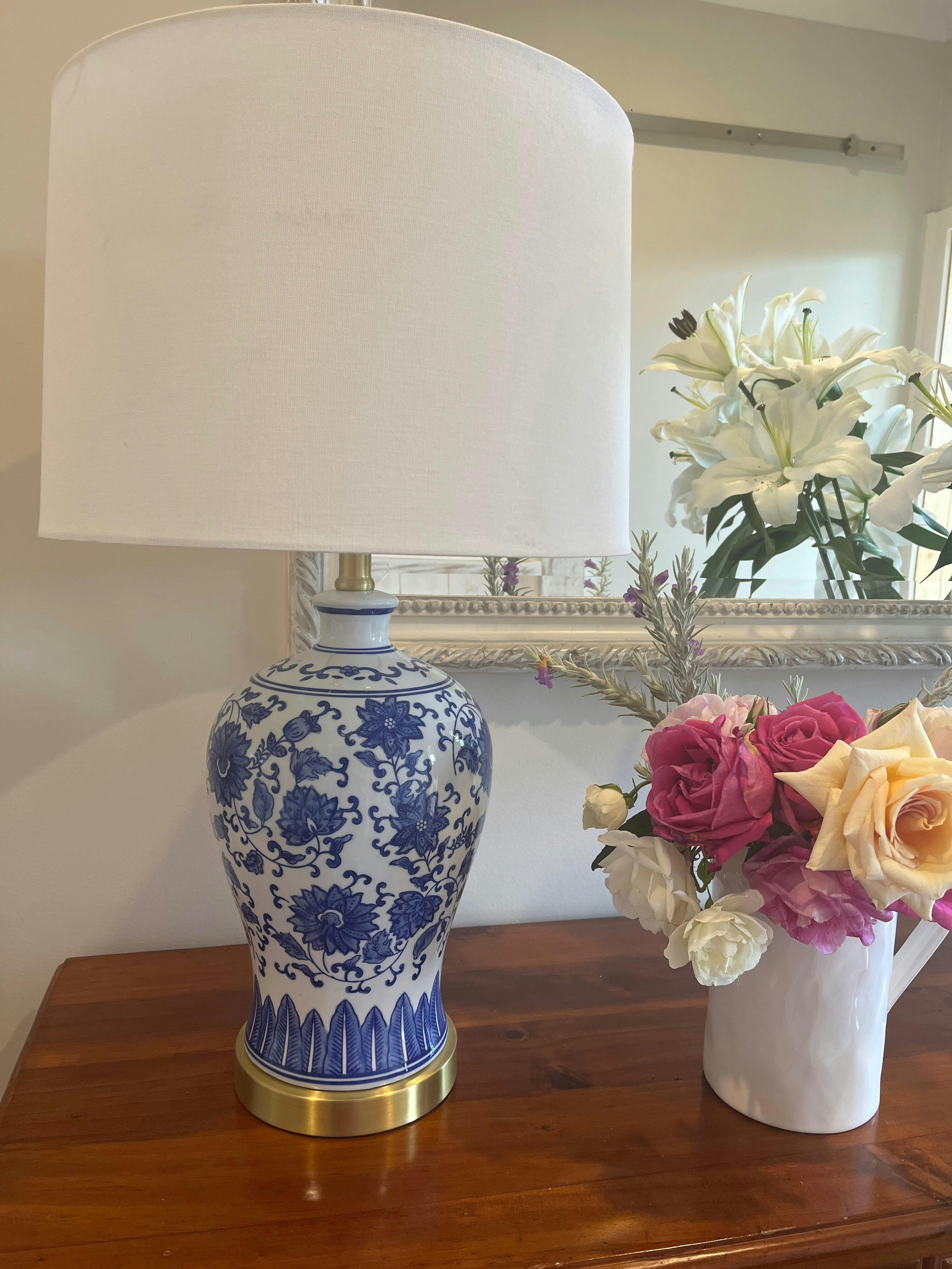 Oriental inspired and featuring a traditional and intricate blue embossed design, the Tessa Table Lamp is perfect to add something a little different into your home. It is complimented by an off white linen hardback shade and chrome base.