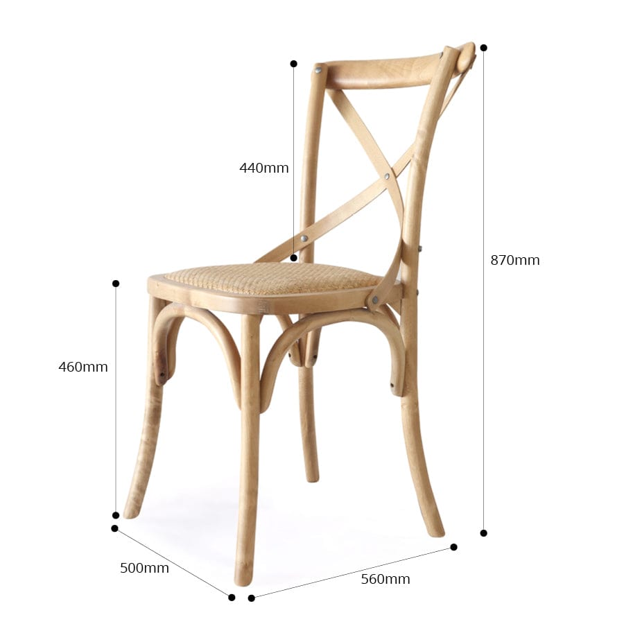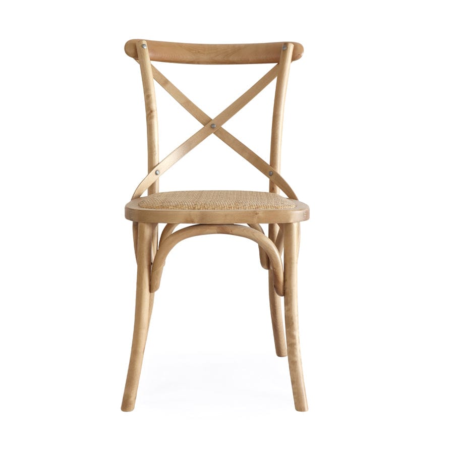 These classic French Country style Cross Back Dining Chairs are timeless, elegant and rustic. They are versatile enough that they can be used in almost any room of the house. Featuring solid Birch frames, a bent cross back support and woven rattan seat, these dining chairs are perfect for domestic or commercial settings.