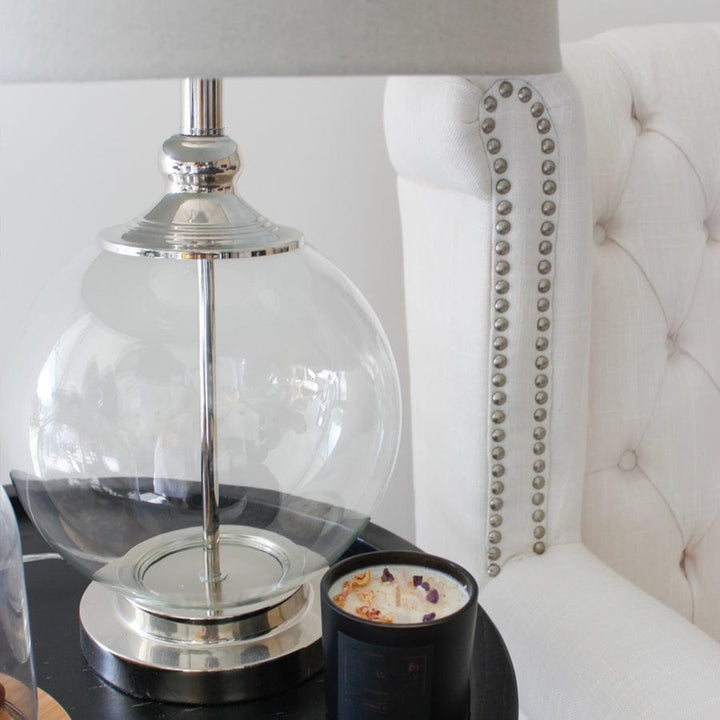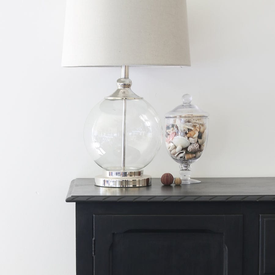 Sophisticated, timeless and elegant, the Hilton Glass Table Lamp will refine your everyday décor. A classic table lamp that is a must in any home.