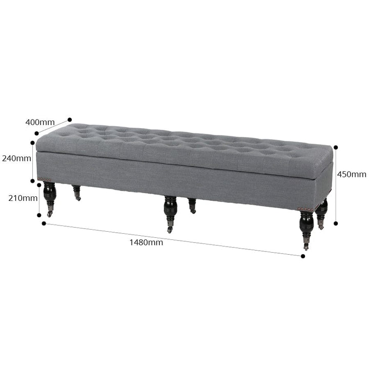 Sophie Storage Dressing Bench 148cm Wolf Grey By Black Mango Interiors