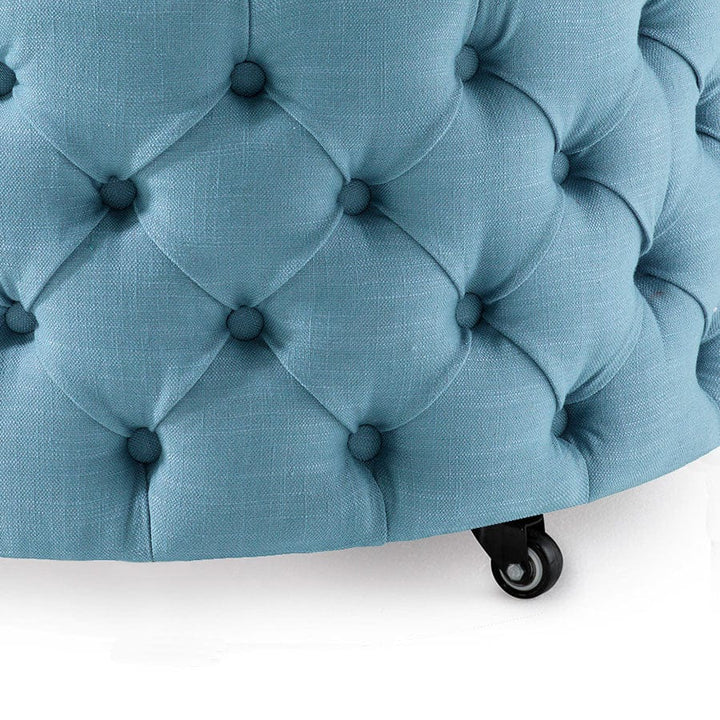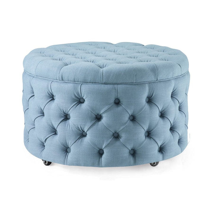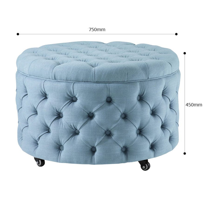 The Emma Storage Ottoman Large is perfect for a living room centerpiece and has inner storage space ideal for blankets, seasonal clothing, and accessories. A truly stunning round ottoman, finished in a heavy duty linen blend fabric.
