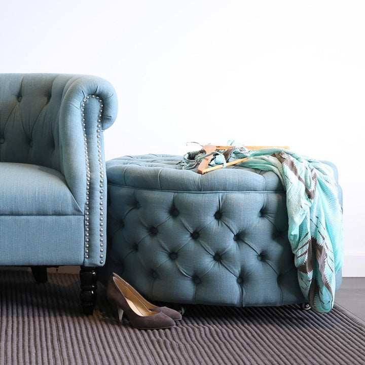 Emma Storage Ottoman Large 75cm Teal By Black Mango Interiors